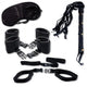 This premium Bed Restraint Kit includes a cross-style bed restraint, adjustable to fit any mattress sized up to 143 inches. The wrists and ankle cuffs are fully adjustable up to 14.5 inches. Also included in this product is a stretch-to-fit blindfold, and a fully adjustable, breathable ball gag.