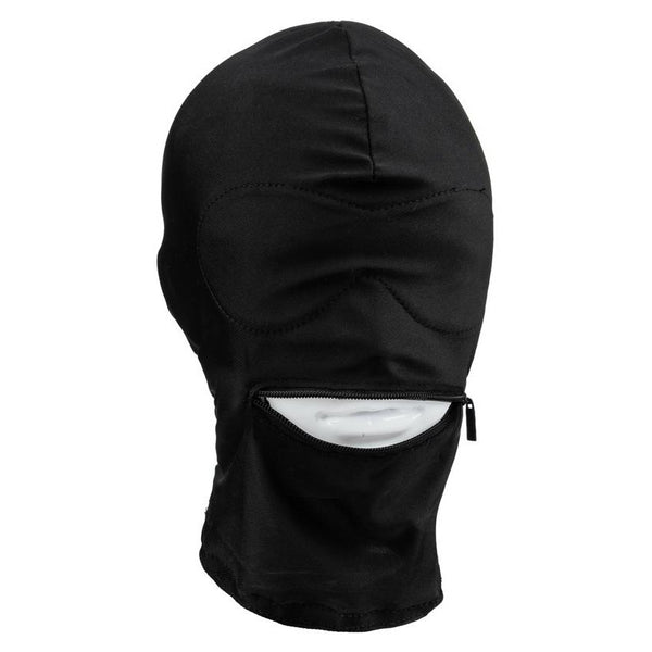 - Soft blindfold built in, Zippered mouth for adjustable access