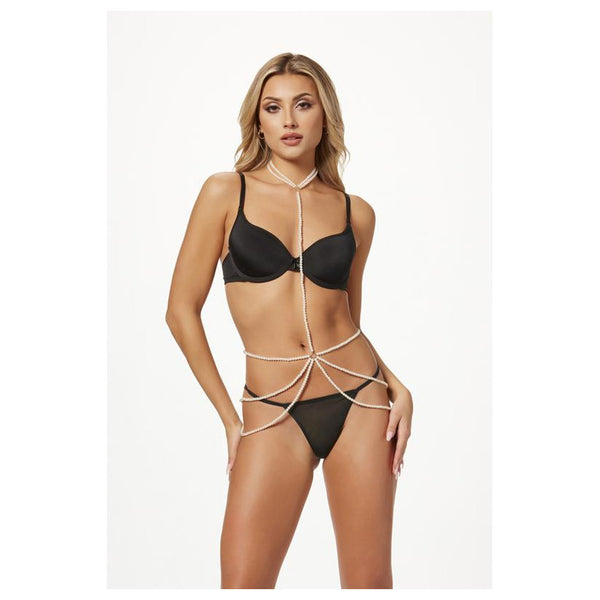 Elevate your intimate apparel collection with the Seven Til Midnight Pearl Chain Choker and Harness. This exquisite piece combines elegance with a touch of daring, perfect for those special moments or to add a luxurious accent to your outfit.
