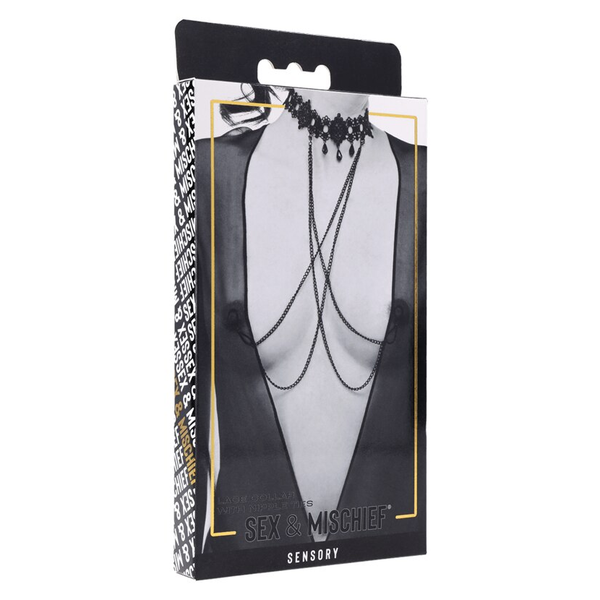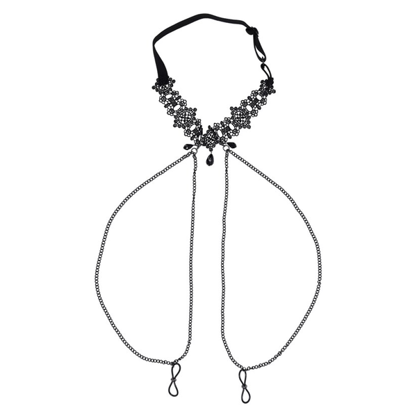 Add a touch of elegant mischief to your intimate moments with this beautifully designed lace collar featuring adjustable nipple ties. Perfect for those who enjoy a subtle yet seductive thrill, this ornate accessory combines style with sensual play.