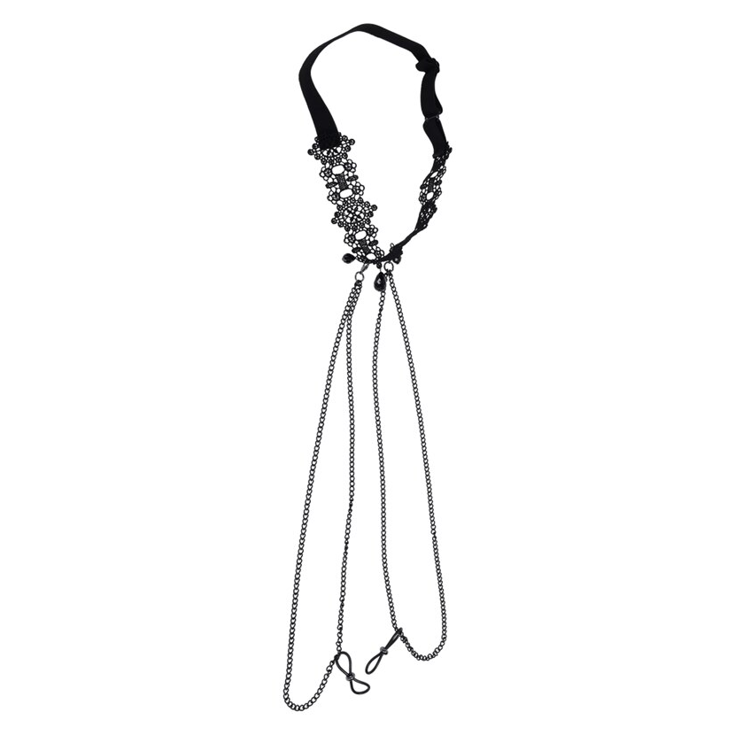 - Detachable dual draping chains - 28cm (11 inches) of glistening black chains that connect to nipple ties for added excitement