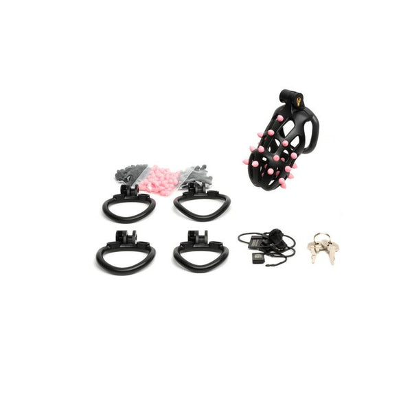 • Includes 1 brass lock, 2 alloy keys, 4 sets of silicone spikes (Black & Pink), and 1 reinforced ABS pin for stealth mode