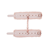 Wrapped in the softest light peach-colored faux fur, the cuffs provide a luxurious sensation against your skin, adding a touch of sophistication with a subtle shimmer.