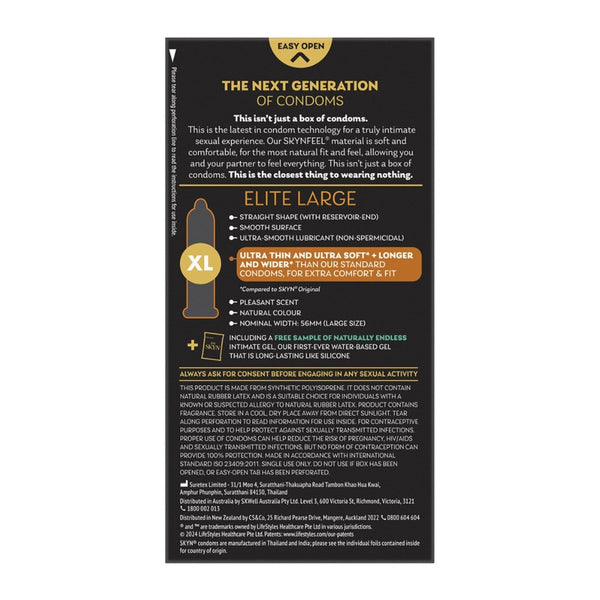 Experience intimacy like never before with SKYN Elite Large Condoms. Made from revolutionary SKYNFEEL™ material, these non-latex condoms deliver ultra-thin, ultra-soft protection that feels incredibly natural, allowing you and your partner to feel everything.