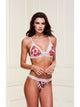 Looking for the perfectly feminine, floral and flirty addition to your lingerie drawer? Look no farther! This sexy and sweet teddy, in a fun white, red and green floral design, is designed with an open back and a deep-v cut in the front, with a playful tie-up.