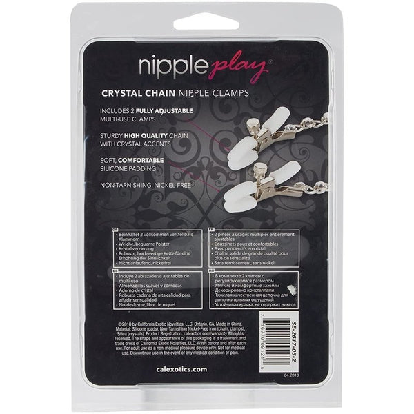 Push your boundaries to the limit with the Cal Exotics Nipple Play Crystal Chain Nipple Clamps. The chain clamps are your introduction to light BDSM as you indulge in titillating nipplegasms.