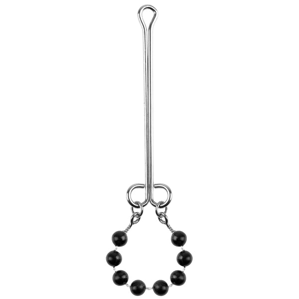 Don’t let your clit feel alone and include the love nub in the action. Spread the metal clamp and place your clit through the teardrop. The dangling beads will tickle and tease your lips to climax!