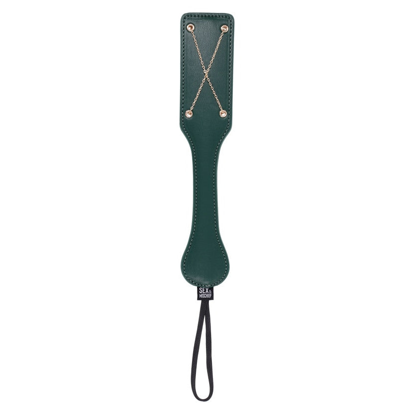 - Textured Impact: Features a luxe gold chain embedded in rich emerald green faux leather, creating a delicate imprint with each spank for added visual and tactile appeal.