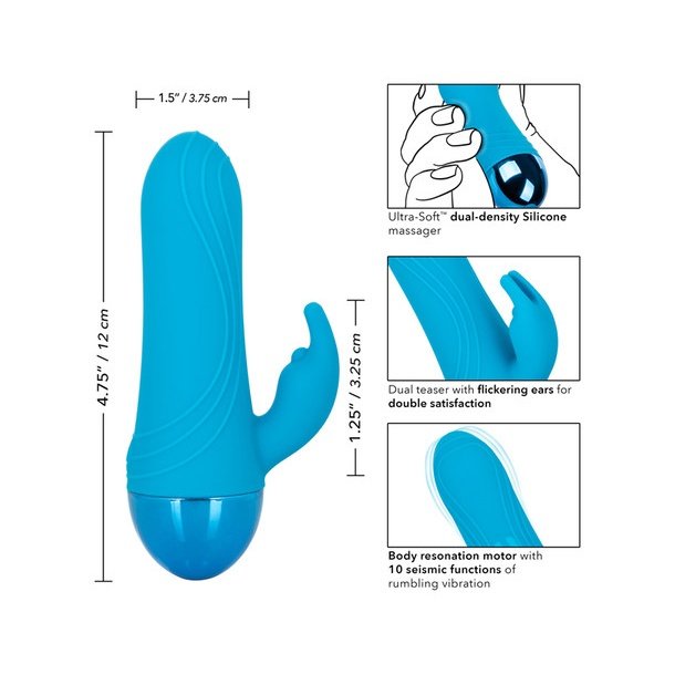 Get busy between sheets with the Cal Exotics - Tremble Please Dual Density Mini Rabbit Vibrator. The rabbit teaser and rumbling vibration will have you writhing in pleasure and passion.