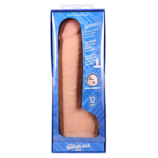 Experience the ultimate in realistic pleasure with Doc Johnson's Vac U Lock The Realistic Cock. This impressive 12-inch dildo is moulded from a real erect penis for maximum authenticity, featuring hand-crafted detailing and a removable Vac-U-Lock suction cup base for versatile play options.
