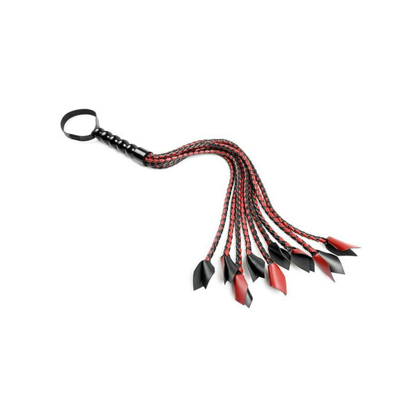 Intensify your impact play with the Saffron Braided Flogger. This cat-o'-nine-tails faux leather flogger features thick braided falls that end in tips reminiscent of riding crops, delivering nine perfectly stinging snaps on your willing partner's flesh.