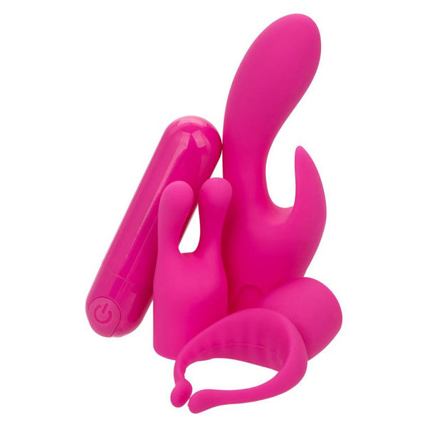 The Pleasure Kits Lovers Collection Rechargeable Bullet Vibrator Kit by CalExotics is designed to elevate your intimate moments with its versatile features and body-safe materials. This kit includes a rechargeable bullet and three unique silicone pleasure tips, allowing you to customise your experience to suit your mood.
