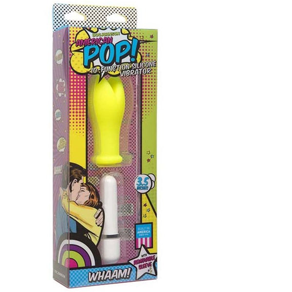 One look at the packaging and the vibrator itself and you will instantly recognize the elements that made Pop Art so popular. The vivid colour, the strong shape and the overall playfulness of the American Pop Whaam Discreet Vibrator design certainly qualifies this device as Pop Art. Unlike other types of Pop Art, however, the American Pop Whaam Discreet Vibrator is also designed to make you cum, and cum hard. It is a Double-Peaked Sleeve with Removable Vibrator, with 10 functions to choose from. You are most definitely going to achieve mind-blowing orgasms every single time you use it. This Health Grade Platinum™ Premium Silicone Removable Sleeve is also waterproof, phthalate free and body safe.