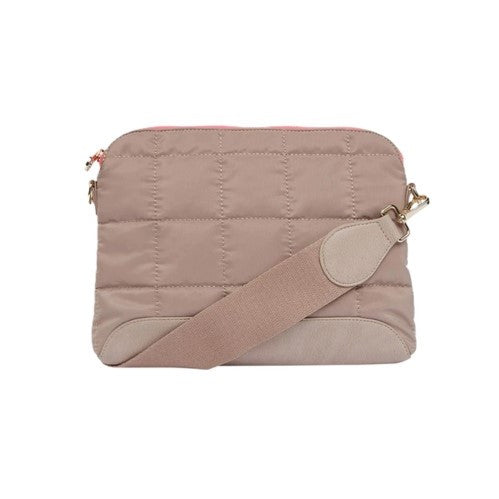 Elevate your style with the Liberty Love Crossbody Quilted Bag in Medium Khaki Green. This chic and functional bag is designed for those who appreciate both fashion and practicality. Its quilted nylon exterior and 14-karat light gold-plated hardware exude elegance, making it a perfect accessory for any occasion.